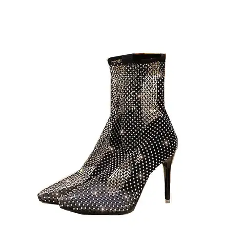 2024 Ladies' custom wishes Stocking Sexy western Style Stiletto heel shoes with Rhinestones ankle boots for Women