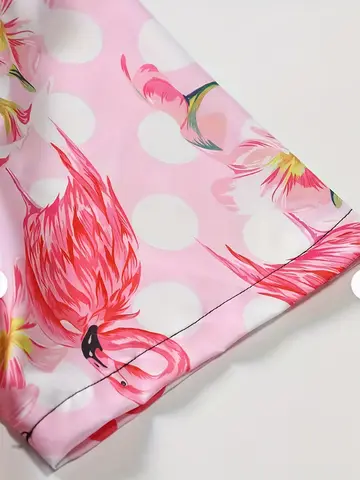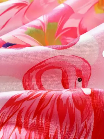Factory Custom Men's casual Button -Down Crocheted Shirt collar Xl Size Vibrant Bohemian Flamingo &leaf print Design