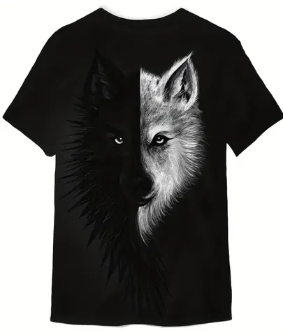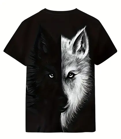 Factory wholesale men's T shirts 3D print black and white wolf crew neck short sleeve casual t shirt for men